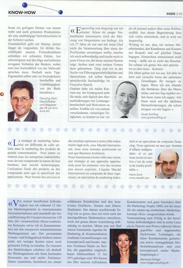 - Zürich Versicherungs-Gesellschaft, Umsatz-Verantwortung SFR. 120 Mio.: Markteinführung « Züritel », Erste Telefonversicherung der Schweiz, Einführung « Database Marketing », « Retention-Marketing », «Stochastic-Analyse »